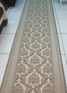 Килимните пътеки в повечето случаи имат модел: ярки кантове под формата на ивици, геометрични, флорални щампи, класически дизайн на килими. Разбира се, изборът не може да се нарече особено разнообразен, но по -често асортиментът ви позволява да изберете опция, като вземете предвид съвпадението на цвета.