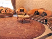 - Кръгъл. Такъв продукт е практичен, особено когато става въпрос за малък кръгъл килим. Този модел е много сходен по характеристики с овални продукти..