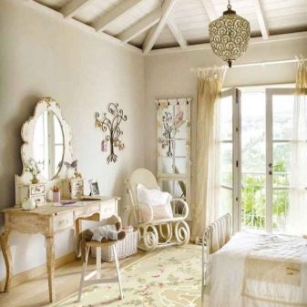 - Показват признаци на стареене. Ярко, ново ново парче, което изобщо не отговаря на този деликатен, изтънчен, романтичен стил. Както всички мебели, килимът трябва да носи отпечатъка на времето..