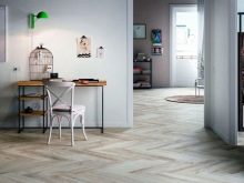 Като цяло, той точно повтаря подобно полагане на паркет. Оформянето на “френска рибена кост” също е популярно сега.. По -интересен е стилът с двойна рибена кост, когато всеки ред включва два правоъгълни елемента наведнъж. “Тройно коледно дърво” ще прилича повече на тъкане. Това оформление изглежда по -голямо и е подходящо за просторни стаи..