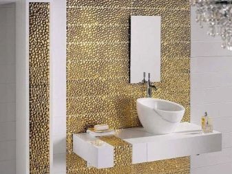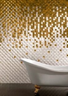 Този тип включва поставяне на плочки от същия цвят по стените и разреждането им с по -ярък и по -сложен декор от друга плочка.. Къдравите плочки в хром или злато са идеални за пръскане.. Това е чудесен вариант, който е идеален за декориране на големи бани..