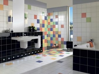 Оформлението се използва както за пода, така и за стените. Но за да украсите повърхността по този начин, е необходимо да закупите поне три модела плочки с различни размери. С тяхна помощ можете да създадете интересен геометричен модел.. В някои случаи модулното оформление дори включва използването на кръгли плочки.. Но това ще отнеме много усилия и време..