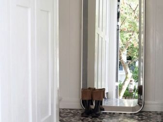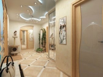 За да запълните такова пространство със светлина, можете да инсталирате голямо осветено огледало или врата с матирано стъкло. Това модерно решение изглежда стилно.
