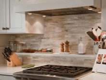 Можете също да използвате модели с различни размери. Това могат да бъдат малки елементи 5 х 5 см за създаване на мозаечна инсталация или малки едноцветни текстурирани квадратчета. Можете да закупите правоъгълни плочки 30×60 или 20×50 и да направите хаотичен монтаж.