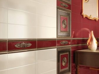 За такъв завършек трябва да закупите правоъгълна стенна плочка и да я поставите хоризонтално според модела “свиня”. По -добре е, ако има лъскава или отразяваща повърхност. В същото време е необходимо компетентно да се комбинират такива декоративни елементи с източници на допълнително осветление. Можете да направите малък декоративен фриз, като го поставите хоризонтално на около метър от пода. По -добре е да се даде предпочитание на контрастиращи покрития в тази област..