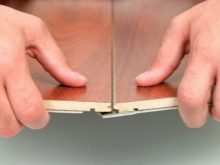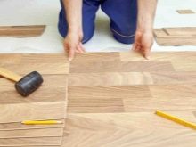 Следващата стъпка е да поставите ламиниран паркет. Преди да продължите с него, трябва да запомните, че този тип подови настилки са склонни към разширяване и свиване под въздействието на температурните промени и въпреки че числените стойности на тези промени са незначителни, е необходимо да се оставят празнини от 8 до 10 mm. Препоръчително е да започнете да полагате ламели от ъгъла.. Първият панел се поставя с гребен към стената, а вторият се завинтва върху него с жлеб. Благодарение на маркови ключалки, процесът на създаване на ред ще бъде прост и не изисква специални умения..
