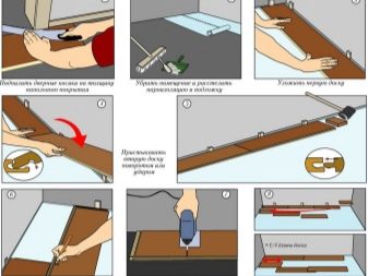 За да извършите сами монтажа на покритието, ще ви трябват инструкции за сглобяване и следните инструменти: молив, линийка, водоустойчива лента, ножовка или мозайката. Преди да започнете да полагате, трябва да оставите панелите разопаковани за два дни, при стайна температура 22 градуса и относителна влажност на въздуха 55%. Това трябва да се направи, за да се аклиматизира материалът за доставка през зимата при ниски температури. Следващата стъпка е да започнете подготовката на пода, която се състои в почистване на повърхността и изравняване на критичните разлики във височината.