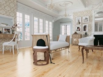 - Изключително Кронопол – ламинирана повърхност 32 клас с абразия в селски стил. Дебелина на продукта 8 мм, ширина – 19 см, V -образна фаска. Под него може да се монтира водна и електрическа система от топли подове. Пакетът съдържа 9 броя с площ 2,397 кв. м. Цената на 1 кв. м е около 900 рубли.