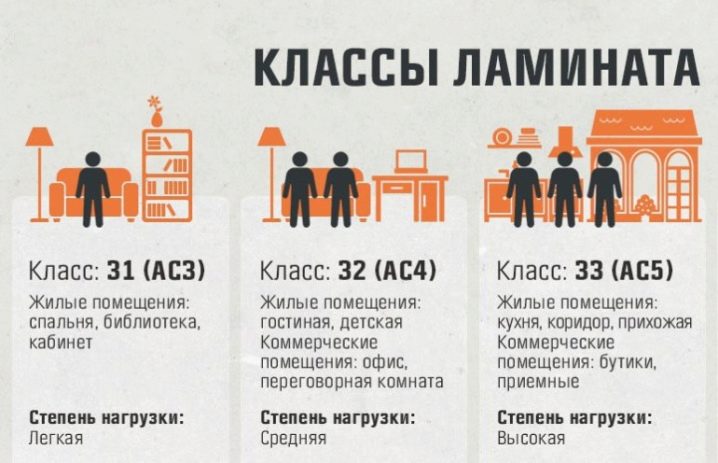 При избора на конкретен модел ламинат е важно да се вземе предвид неговият клас. Така че тънките покрития от 31 и 32 класа са по -подходящи за монтаж в по -интимни домашни зони: дневни, спални. За трапезарията 32 -рият клас е по -добър. За кухнята купувайте само издръжлив, устойчив на износване ламинат Kronospan с характеристики, устойчиви на влага..