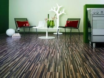 - Някои модели са представени в по -ярки цветове. Те могат да имитират не само модел на дърво, но и други покрития, като естествен камък, мрамор, гранит със съответния цвят. В допълнение, дъските могат да имат интересен геометричен модел, използващ различни нюанси. Такива ярки и необичайни опции са идеални за декориране на детски стаи или по -модерни стаи със стил..