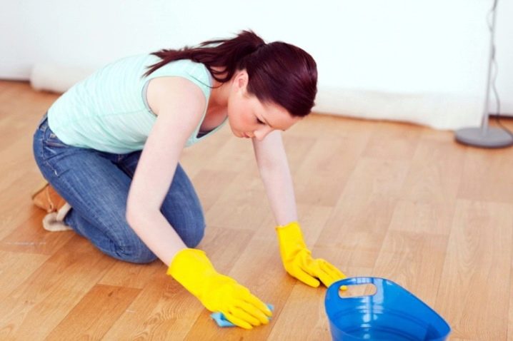 - Що се отнася до мокрото почистване, за това можете да използвате мека кърпа, потопена в чиста топла вода. Преди да започнете мокро почистване, е по -добре да изстискате парцала добре. След почистване на подовете можете да избършете ламината с чиста, суха кърпа, за да предотвратите бързо натрупване на прах върху него, но това не е необходимо..