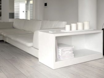 За интериора на стаи в стил висока технология сив релефен ламинат е перфектен. Ламинатът с мраморен модел или геометричен печат също ще пасне идеално.