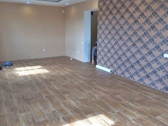 - Препоръчително е да изберете подова настилка, която да копира паркетни панели с шарка, която ще лежи успоредно на потока на светлинния поток. Можете да закупите материал със сложен модел..