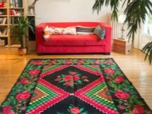 - Молдовските килими са изработени от естествена овча вълна. Те се различават от продуктите на други производители с уникален флорален дизайн, изобразен на тъмен фон. Благодарение на своя дизайн, те са в състояние да украсят къщи, декорирани във всеки стил..