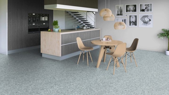 За кухни и бани много хора предпочитат линолеум с плочки. Такива продукти напълно повтарят тънкостите на линиите за плочки с всякаква сложност. Също така в кухнята покритията с имитация на естествен материал изглеждат страхотно: камък, дърво, гранит или мрамор..