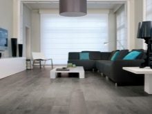 Широка гама от линолеум ви позволява да създадете уникален дизайн във всяка стая. В зоните за отдих можете да поставите материал, който прилича на ламинат. Това покритие изглежда много естествено, но много по -евтино и по -лесно за поддръжка..