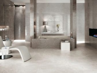 - Можете да спестите от подови настилки, ако изберете материал с матова повърхност; има дори повече от тях в продажба, отколкото структурирани и „други“ порцеланови каменни изделия. Внимателно се запознайте не само с информацията за нивото на плъзгане, но и с кои помещения можете да използвате определен вид покритие. Препоръчва се да научите повече за това какви съединения се използват за третиране на външната повърхност, те трябва да образуват филм, невидим за невъоръжено око, който има специални вдлъбнатини, които увеличават сцеплението при ходене.