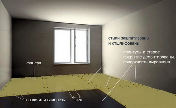 Първо, трябва внимателно да разгледате циментовата или дървената основа. Инсталирането винаги се извършва само върху чиста и равна повърхност. За да може субстратът да се втвърди добре, е необходимо пода да се вакуумира, а след това да се отървете от неравностите с помощта на специални смеси..