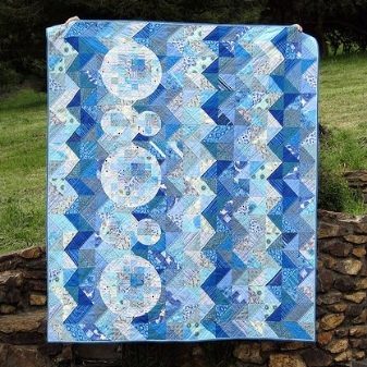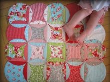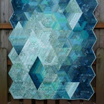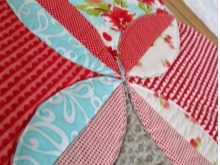 Изрязаните заготовки трябва да се сгънат с лицевите страни и да се зашият на шевна машина по линията на надбавките (препоръчително е частите да бъдат предварително закрепени с щифтове или да бъдат пометени, така че в идеалния случай да се припокриват и да не се движат никъде). Можете да оформите лента от квадрати, като добавите един по един; можете да ги шиете по двойки и след това да ги съедините заедно. Готовите шевове се препоръчва да се гладят. Зад първата надлъжна лента правим втората и т.н. И тогава, както се досещате, смиламе получените дълги „панделки“ в нашето платно и ги подреждаме. Не забравяйте за кант, той ще даде на вашето творение по -точен и завършен вид..