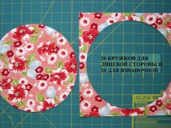 Изрязваме фигури от приготвената материя – допълнително ще ги комбинираме в едно цяло. Ако те са еднакви, всичко е просто: подготвяме шаблон и го използваме за всички наши „пъзели“. Е, над странните петна ще трябва да свършите малко работа. Основното нещо е да оставите надбавки за шевове от 1 см от всяка страна..