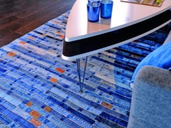 За да определим палитрата и други атрибути, е много важно предварително да си представим къде ще се „засели“ нашето дете. Килимите, направени от отпадъци с някакъв модел, изглеждат любопитни, но не е факт, че те ще бъдат подходящи в изследването. Но децата наистина обичат да гледат такива творения, така че весел пъстър килим с интересни снимки и шарки е чудесен вариант за детска стая.
