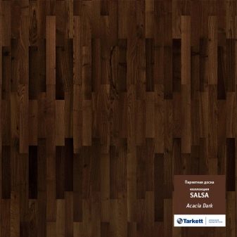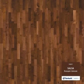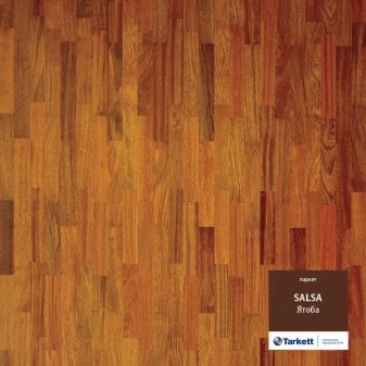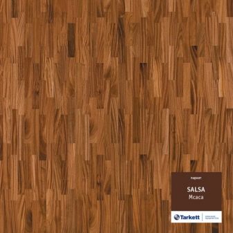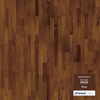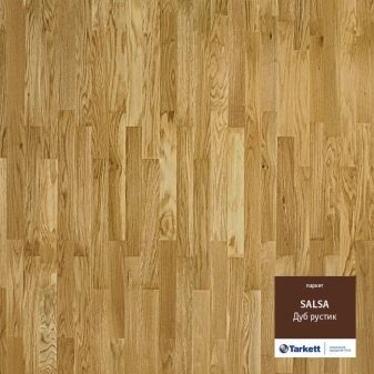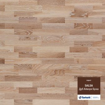 - Salsa Premium – класически паркет в трилентово първокласно изпълнение. Естествената структура на дъб и ясен е успешно подчертана от меки тонове. Такова покритие ще отговаря на всеки интериорен стил. Дъските са покрити със специален защитен маслено-восъчен състав.