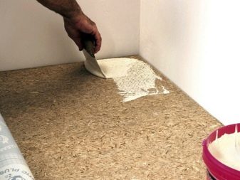 - Покрийте основата със слой лепило и я оставете да изсъхне (дебелината на слоя и времето за сушене зависи от производителя и от вида на лепилото, обикновено посочено в инструкциите за продукта).