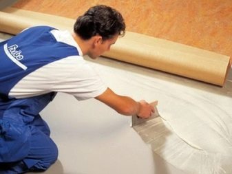 Най -лесният процес на инсталиране и инсталиране е с двойна лента. За да направите това, двустранната лента се залепва към пода с мрежа (без премахване на горния защитен слой) и отгоре постепенно се нанася линолеум. В същото време това е и най-ненадеждният и краткосрочен вариант..