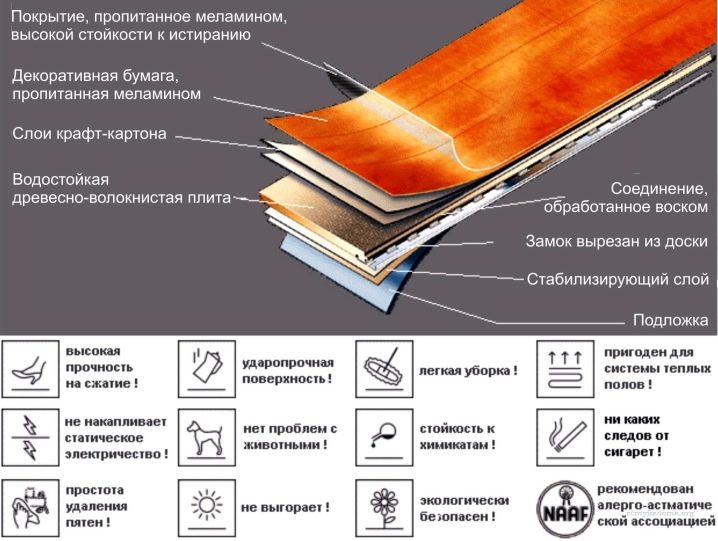 Като основа за производството на ламинирано покритие се използва ПДЧ, състоящо се от три слоя с фина структура. Основните му предимства са издръжливостта, екологичността, изобилието от цветови опции, удобството и лекотата на обработка. Суровината за производството на DC плочи е големи дървени стърготини, стърготини, дървени стърготини, в които след раздробяване се добавя термореактивна синтетична смола. Стружките се вземат от дървопреработката широколистни и иглолистни.