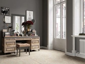 Селски дъб в интериора на детска спалня създава спокойно и спокойно настроение за дете. ПДЧ в цвета на Трансилвания, от което е изработена дамската маса, ни връща преди 100-200 години, въпреки цялата модерност на останалите детайли на декорацията на стаята.