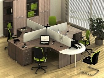 Мебелите от ламинирано ПДЧ в цвета на дъб Шамони, какаов нюанс, са много подходящи за създаване на интериора на офис пространство и помагат да се настроят служителите за работа. Фасадите на мебелите за хола в цвят Ash Shimo правят интериора в ярки тюркоазено-червени тонове по-близо до природата, а атмосферата в стаята е по-топла и по-удобна..