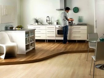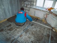 - На плочки. Това най -често се прави в кухнята или в коридора. Разхлабените плочки се залепват отново. За изравняване на повърхността изравняващата смес и плаващите подове Knauf са еднакво подходящи..