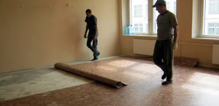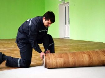 Важна част от подготовката на линолеума за полагане е аклиматизацията в помещението, където планирате да го поставите. Рулото се поставя изправено и се оставя така. Ако вие сами трябва да правите стайлинг през зимата, тогава ще трябва да поставите рулото предварително в стаята, като го оставите да лежи навито за половин ден.