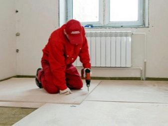 - Някои видове покрития, които изключват възможността за комбиниране директно с груб вариант на бетонната основа, така че ще трябва да създадете сух слой с помощта на листов материал.