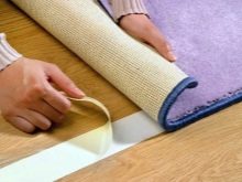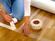 - С помощта на лепяща лента. Препоръчително е да използвате тази опция, когато площта на помещението надвишава 20 кв. М и е възможно честото движение на тежки предмети..