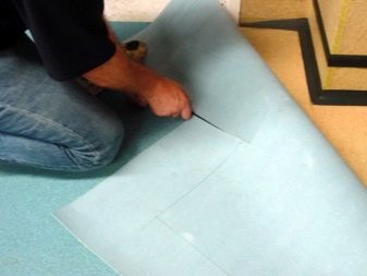 Първият етап от технологията за подови настилки „направи си сам“ включва маркиране на линолеума и рязане, когато покритието се аклиматизира в стаята, легне и изглади, като се отърве от специфична „нова“ миризма.