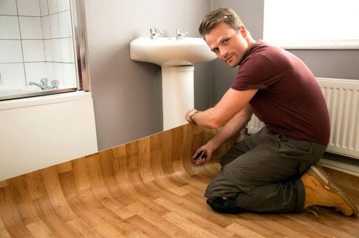 - Високата пластичност е друга отрицателна характеристика на линолеума. Независимо от вида, гъвкавият материал винаги приема формата на повърхността, върху която е положен, така че съществуващата основа определено ще се нуждае от висококачествена подготовка. В противен случай всички неравности ще бъдат забележими, което ще повлияе на външния вид на линолеума и ще анулира изразходваните усилия.