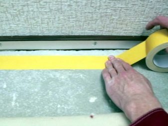 - Първо, трябва да залепите периметъра на основата, фугите и по желание цялото покритие с лепяща лента, оставяйки защитния слой на лентата непокътнат.