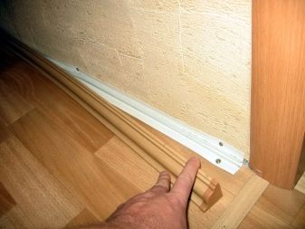 - За линолеум с имитация на паркет, первазите от MDF / PFC с дървесна текстура се считат за оптимална рамка;