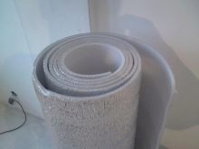 - Звукоизолираща подложка, подовата настилка на която е направена както отделно за линолеум, така и като допълнение към звукоизолиращия „плаващ“ под. Субстратът трябва да е умерено дебел и мек. Ако планирате да поставите естествен линолеум, тогава тази част трябва да бъде корк / юта и трябва да използвате хидроизолация.