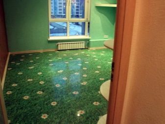 - Естественият линолеум може да се превърне в акцент в интериора на помещения за различни цели, от всекидневни до детски.