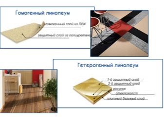 Всеки тип има свои собствени характеристики и е предназначен за конкретен тип стая. Полутърговските подови настилки са разделени на два вида: хетерогенен (многослоен) и хомогенен тип..