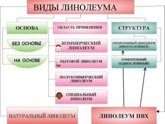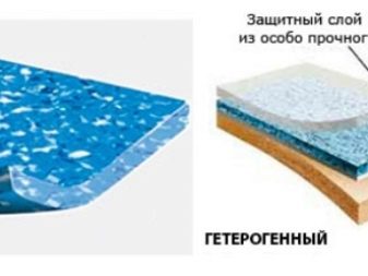 Всеки тип има свои собствени характеристики и е предназначен за конкретен тип стая. Полутърговските подови настилки са разделени на два вида: хетерогенен (многослоен) и хомогенен тип..