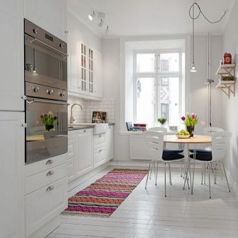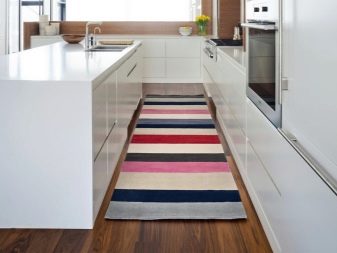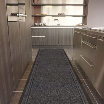 За банята и кухнята ще ви е необходима пешеходна пътека, устойчива на влага и без миризми. Тя трябва да бъде изработена от синтетика, да има гумирана основа, за да се намали рискът от мухъл и плесен. По-добре е да изберете покрития с игла. В никакъв случай не трябва да се плъзга и търкаля..