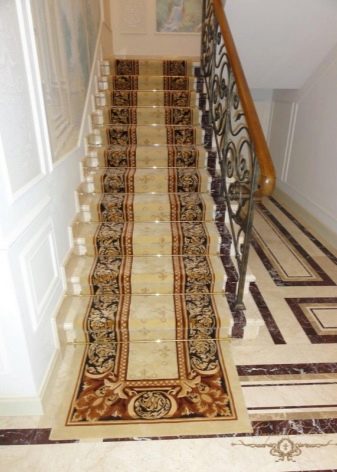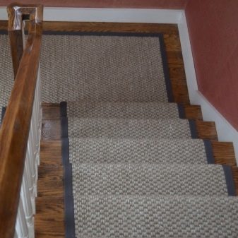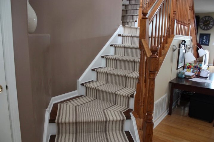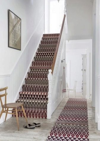 Това е пример за правилното поставяне на килима върху стълбище. Обърнете внимание, че не е необходимо килимът да покрива цялата ширина на стълбите. Достатъчно е да покрива само средата.