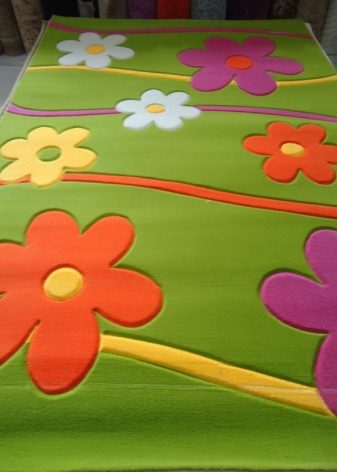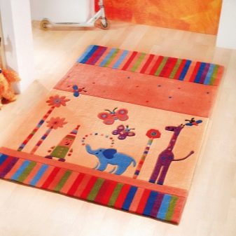 За детска спалня изборът на килим ще бъде малко по -труден. От една страна, има много дизайни и цветове за детски килими, всеки родител или дори самото дете може да намери нещо за себе си, но трябва да внимавате с материала. Така, например, ако детето е алергично към някакъв вид плат или вълна, тогава естествено не си струва да се вземе песен, която съдържа поне малко от този материал..