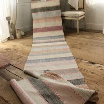 Можете да намерите и висококачествени бегачи за килими от местни производители. Например руска компания Псковска волост осигурява малки пътеки за килими с напълно различни форми – от продълговати овали до квадратни ромби. Те струват около хиляда рубли. Въпреки факта, че размерите са предоставени само малки, той е ръчно изработен, тоест ръчно изработени продукти, предоставени в едно копие или направени по поръчка. Цветът им е дъга, весел, идеален за детска стая. Тези килими, без власинки, плетени.