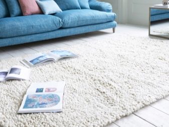 Бялото е красиво, но непрактично. Покупката на такова покритие бързо ще доведе до подмяната му. Ако искате да украсите пода със светъл килим, по-добре е да изберете сив или светло сив тон..