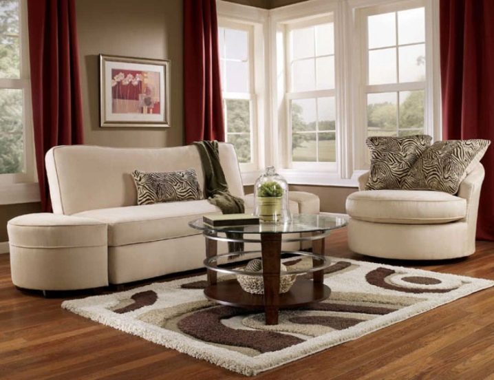 - ако в стаята липсват ярки цветове и е изпълнена със светли петна, можете да си купите бял модел с щампа: благодарение на опората през пелерини и възглавници върху мека мебел, тя ще изглежда не само хармонично, но сякаш е избрана като взема предвид специален дизайн;