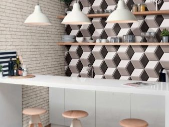 Декоративните модели са чудесни за хай-тек или минимализъм. Огледалните плочки под формата на пчелни пити също изглеждат страхотно в такива интериори. Привлича вниманието и ви позволява да запълните интериора със светлина, задайте модни акценти..